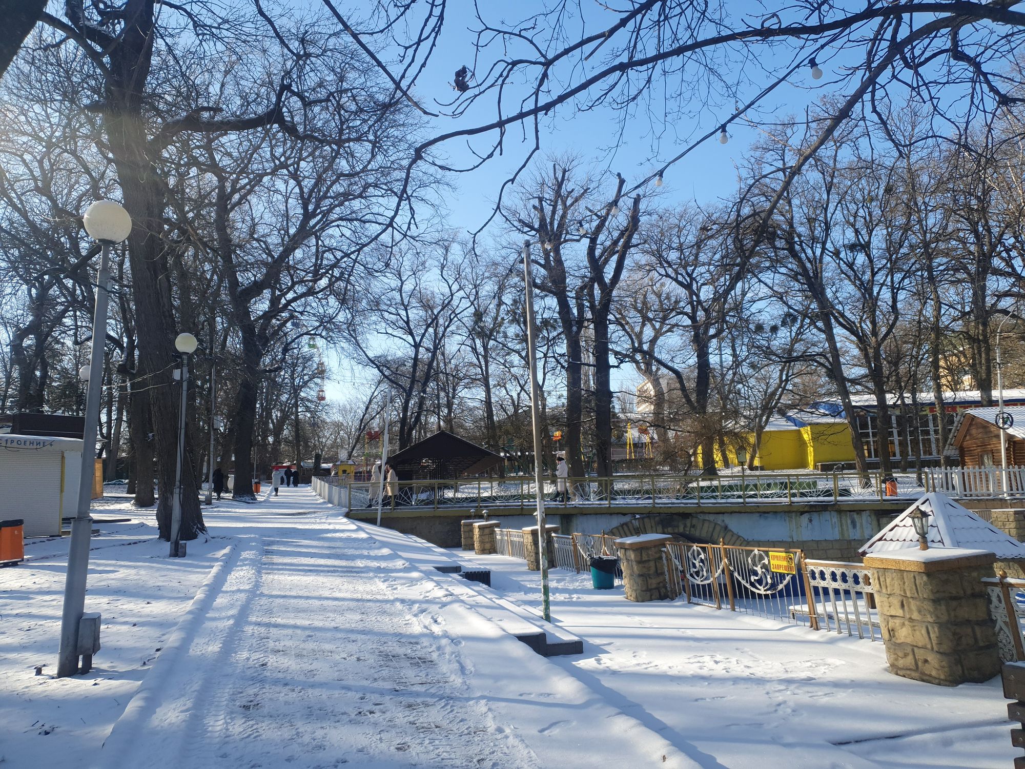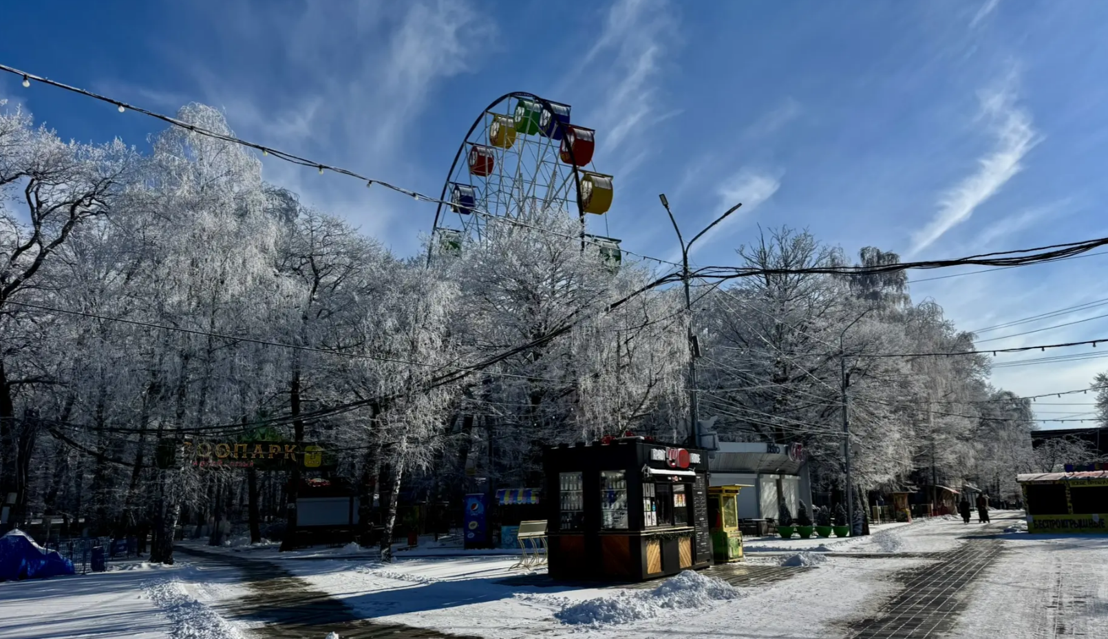 Заснеженные деревья в парке Победы смотрятся роскошно на фоне лазоревого неба.