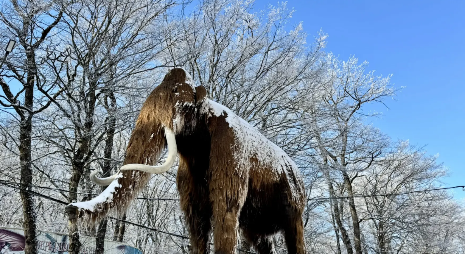 А в парке Победы мамонт примерил снежную "шубку".